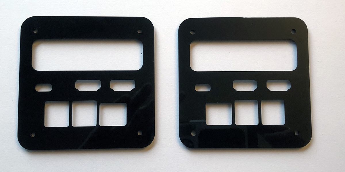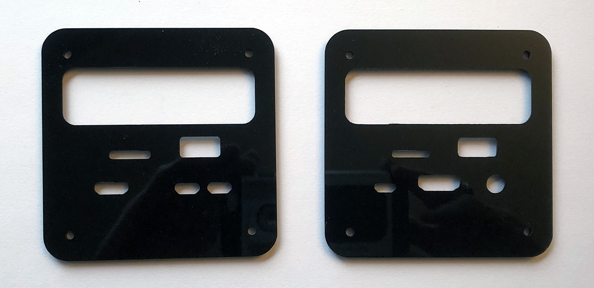 The stock panels are made from high gloss black acrylic and are available blank with no pre-cut holes for you to post machine to suit your Project or pre-machined for the different carrier boards and Pi connector configurations. Browse the STORE for parts.